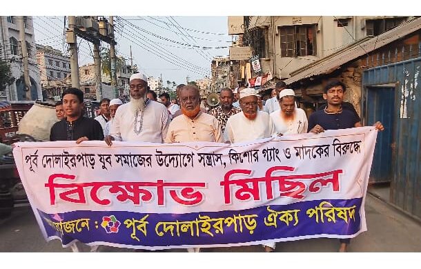 পূর্ব দোলাইপাড়ে মাদক, সন্ত্রাস ও কিশোর গ্যাংয়ের বিরুদ্ধে ঐক্য পরিষদের বিক্ষোভ মিছিল ও পথসভা