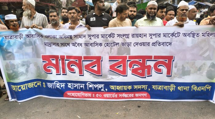 যাত্রাবাড়ীতে অবৈধ আবাসিক হোটেলের বিরুদ্ধে মানববন্ধন