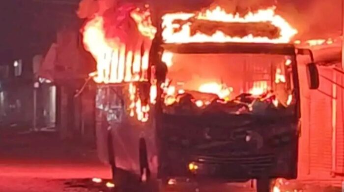 দুর্বৃত্তদের দেওয়া আগুনে পুড়ে অঙ্গার বাসচালক